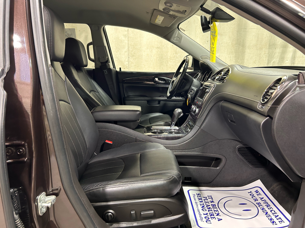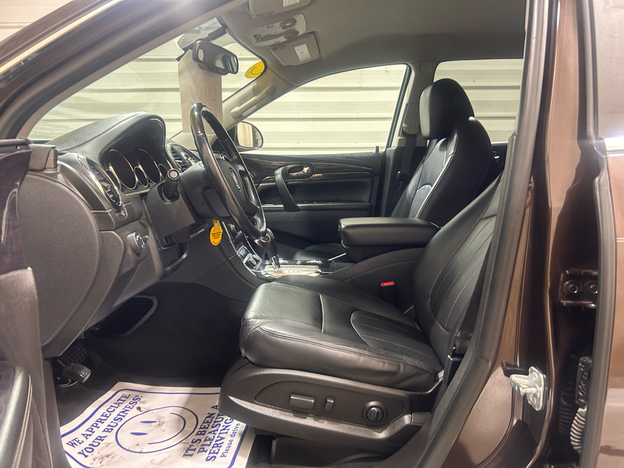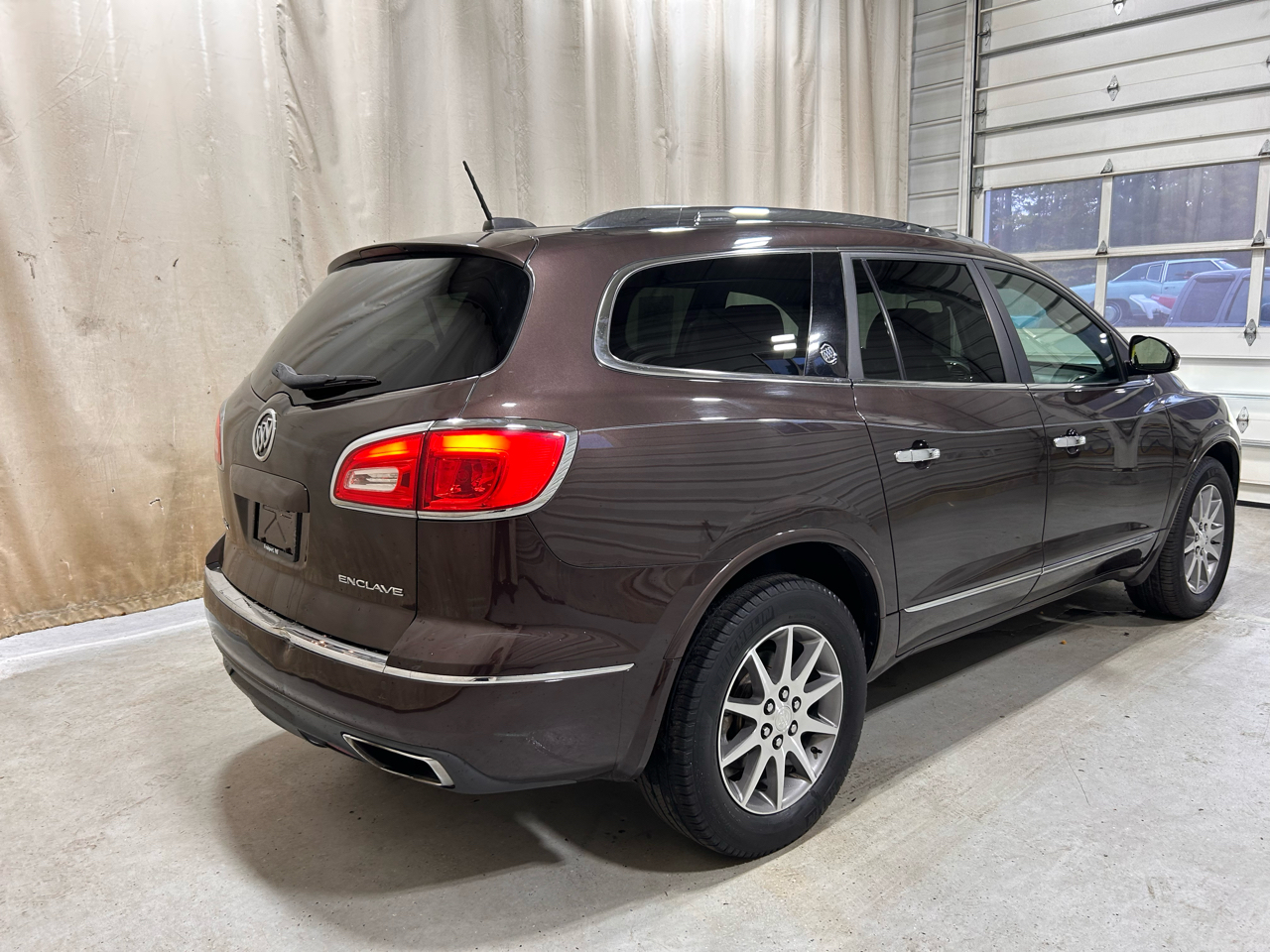 Step inside this sleek Brown 2017 Buick Enclave and prepare to cruise in style. With its spacious interior, luxurious leather seats, and panoramic sunroof, you'll feel like you're driving in the lap of luxury. The powerful engine will have you zooming down the highway with ease, while the smooth handling makes each turn a breeze. Equipped with a convenient backup camera and parking sensors, parking in tight spots has never been easier. Whether you're running errands around town or embarking on a road trip adventure, this Buick Enclave has you covered. So go ahead, turn up the radio on the premium sound system, sit back, and enjoy the ride in this versatile and reliable vehicle.